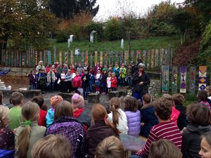 - in diesem Schuljahr gibt es ein Klassenzimmer zu wenig, die ausgelagerte Klasse lernt im "alten Schulhaus", in notdürftig renovierten Räumen (Rest des Gebäudes ist kalt, unbewohnbar, eine Baustelle)