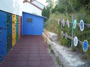 - 2012 Eine große Kletterwand konnte im Seitenbereich des Nebenhauses angebracht werden.